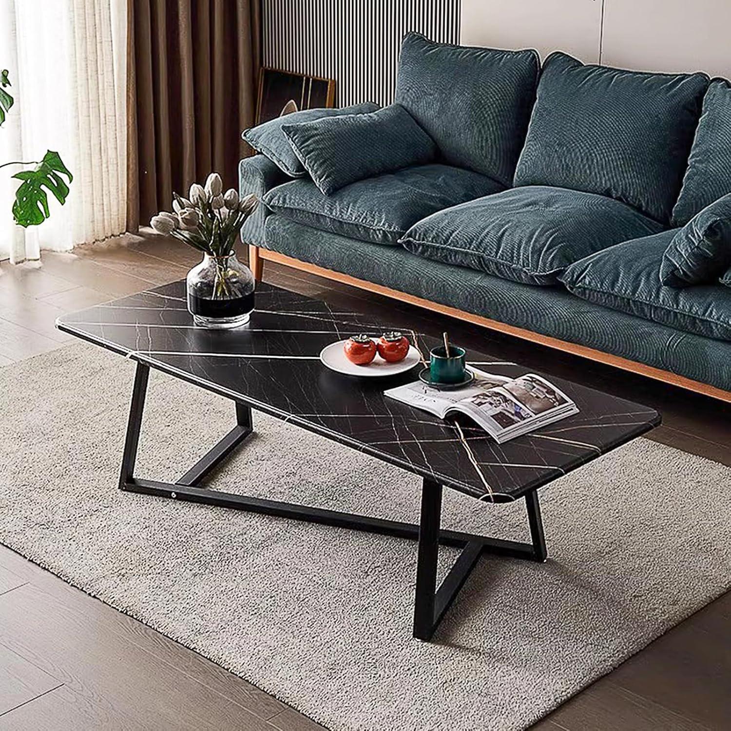 This medium-sized table combines vintage charm with modern minimalist design, featuring a sturdy metal frame and a high-quality MDF wood tabletop finished in a sleek black stone color. Its curved rounded corners add a safety element while enhancing the aesthetic appeal, making it perfect for living rooms, offices, or bedrooms. Measuring 39″ in width and 23″ in depth, with a height of 17.7″, it offers ample surface space for drinks, books, or decorative items without overwhelming smaller spaces. The combination of rustic wood tones and industrial black metal legs brings both functionality and visual interest,effortlessly complementing a variety of interior styles.