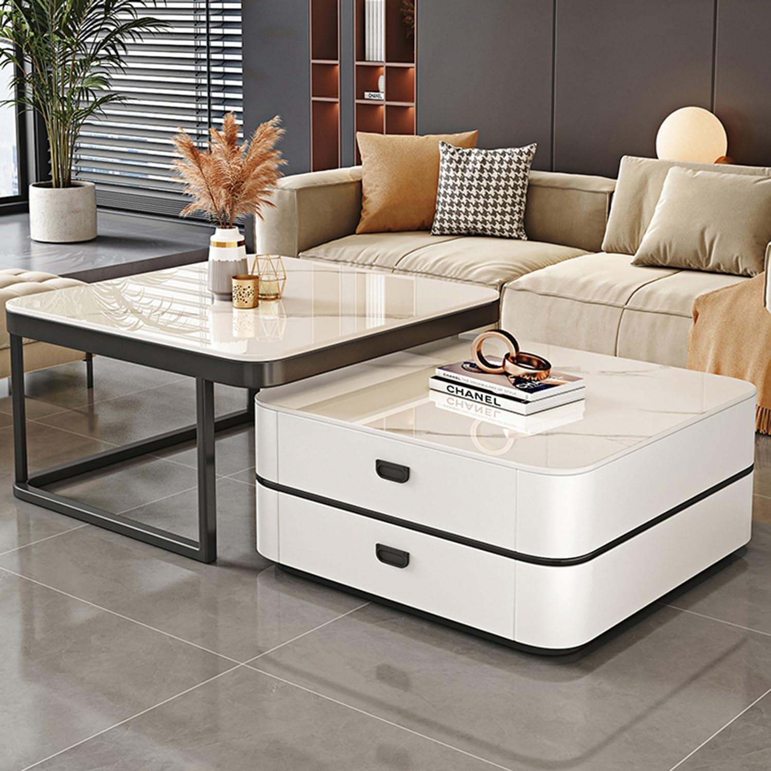 Square Modern Center Table Featuring Built-In Storage and Sleek Design for Versatile Use