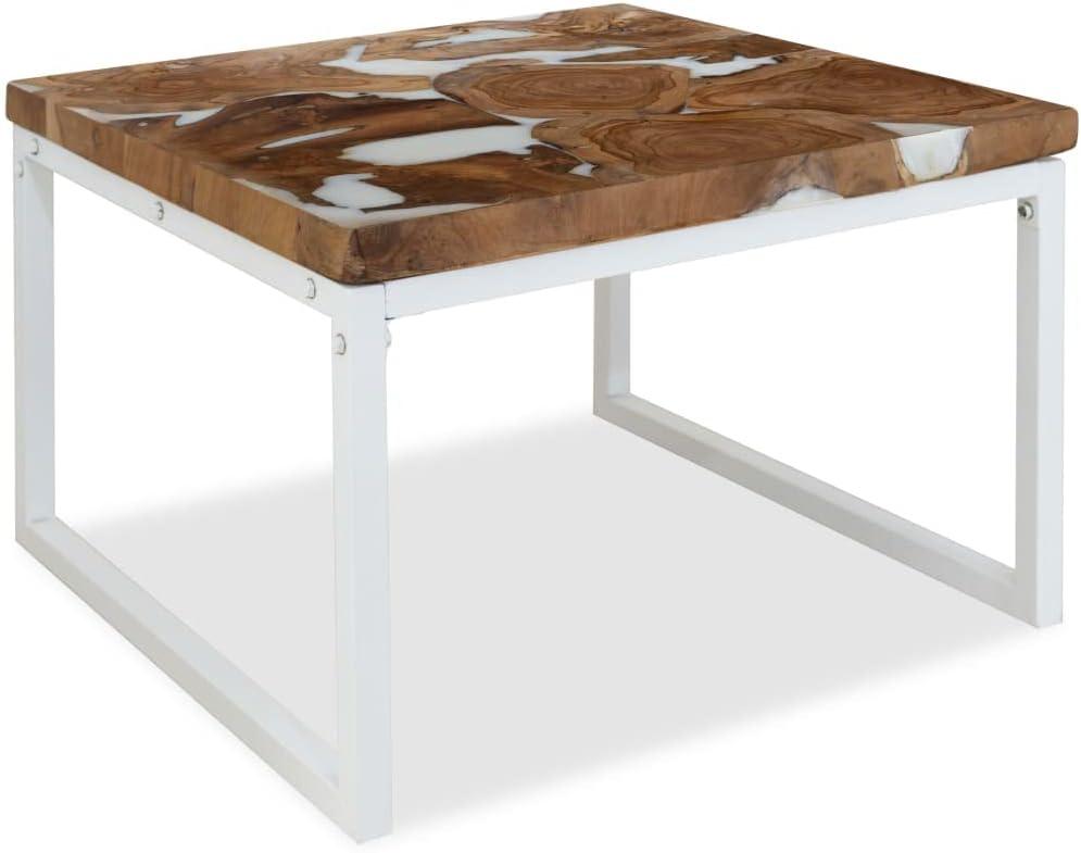 vidaXL Unique Tea and Resin Coffee Table – Stylish Modern‍ Living Room⁢ Furniture with steel Frame & Handmade Genuine​ Teak Tabletop ⁤- 23.6″ x 23.6″ x 15.7″