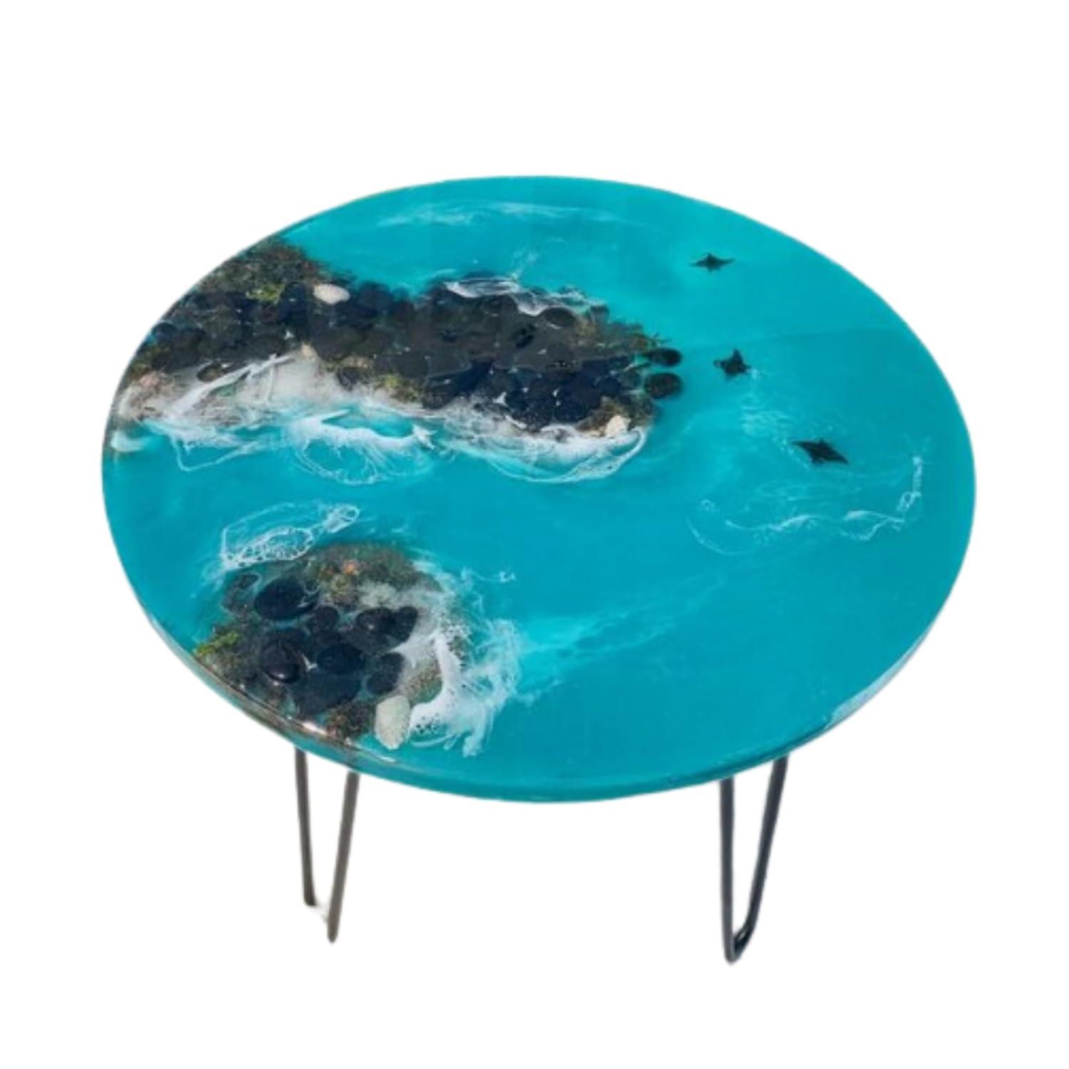 Elegant‍ Handcrafted Wooden‌ Table Featuring Ocean-Inspired Design, 36-Inch Diameter with 19-Inch Legs