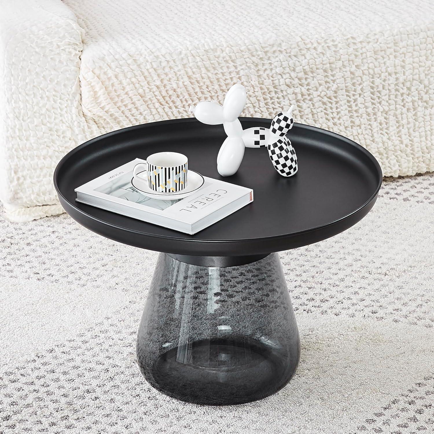 Glass Based Round Coffee Table Nordic Light Luxury metal Top Glass Coffee Table Ins Style Modern Coffee Table for Living Room and Home Office (smoke-L)