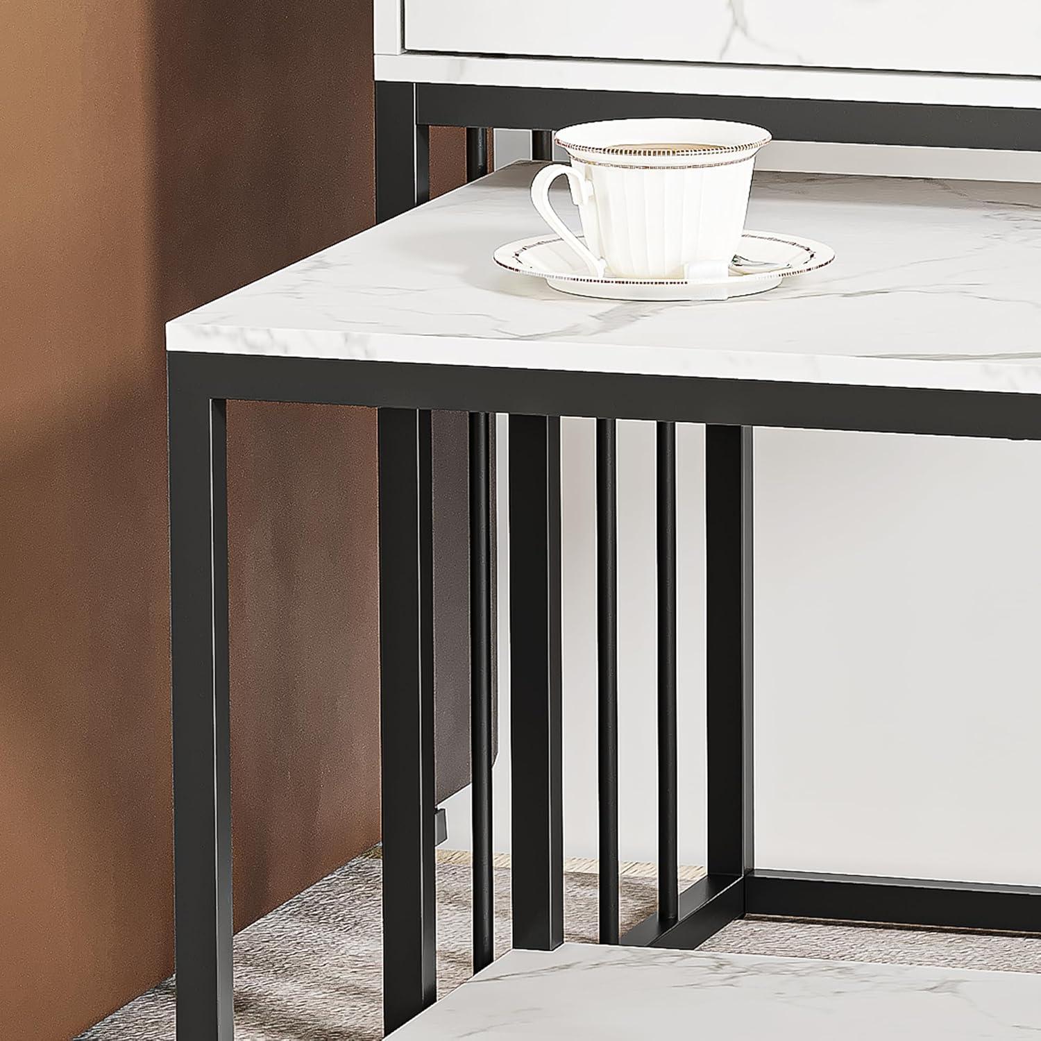 Coffee Table Set,​ Nesting Table with Sawtooth Polygon Base ‌Design, Large Storage Table, Center Table for Living Room, ​Balcony, Office(Blue)
