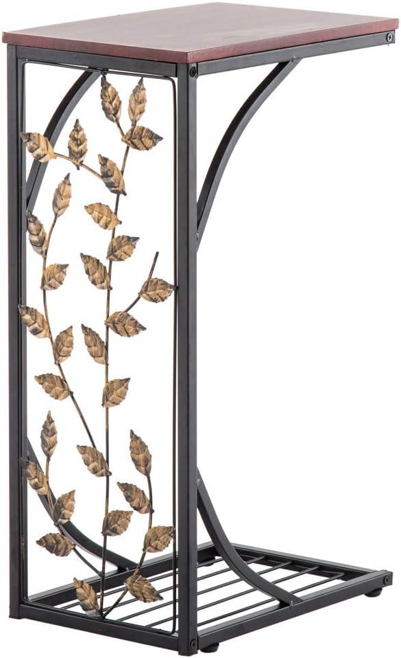 This stylish accent piece features a high-quality iron frame paired with a rich brown wooden top, offering a perfect blend of rustic charm and industrial appeal. The traditional burnished leaf design etched into the metal adds an elegant decorative touch that complements various interior styles. Measuring approximately 12 x 8.27 x 21.26 inches, its compact size suits small living spaces like apartments, condos, or dorm rooms.Lightweight and slim,it easily fits beside low sofas or beds,making it a versatile option for holding coffee cups,laptops,remote controls,or lamps.