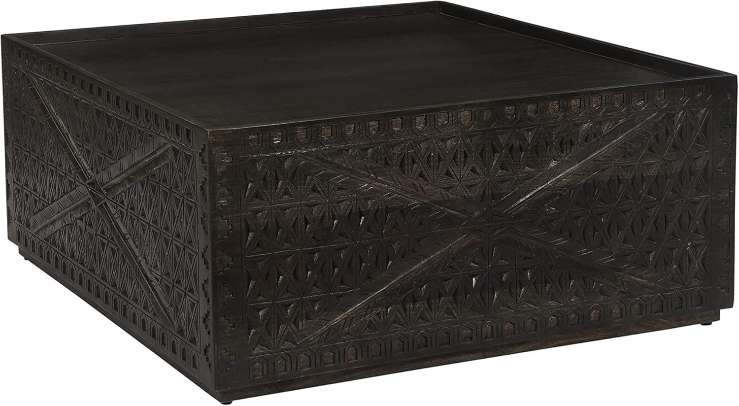The ‍Urban Port 38-Inch handcrafted Mango Wood Square Coffee Table, Artisanal Carved Mesh Base, Black