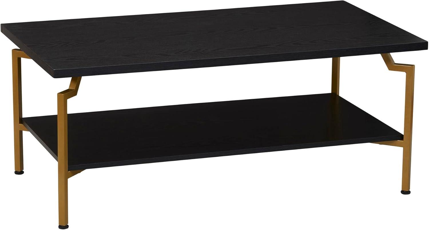 Household Essentials Crown ‍Rectangular Coffee⁤ Table ⁢with Storage Shelf Black Oak Wood Grain and Gold Metal
