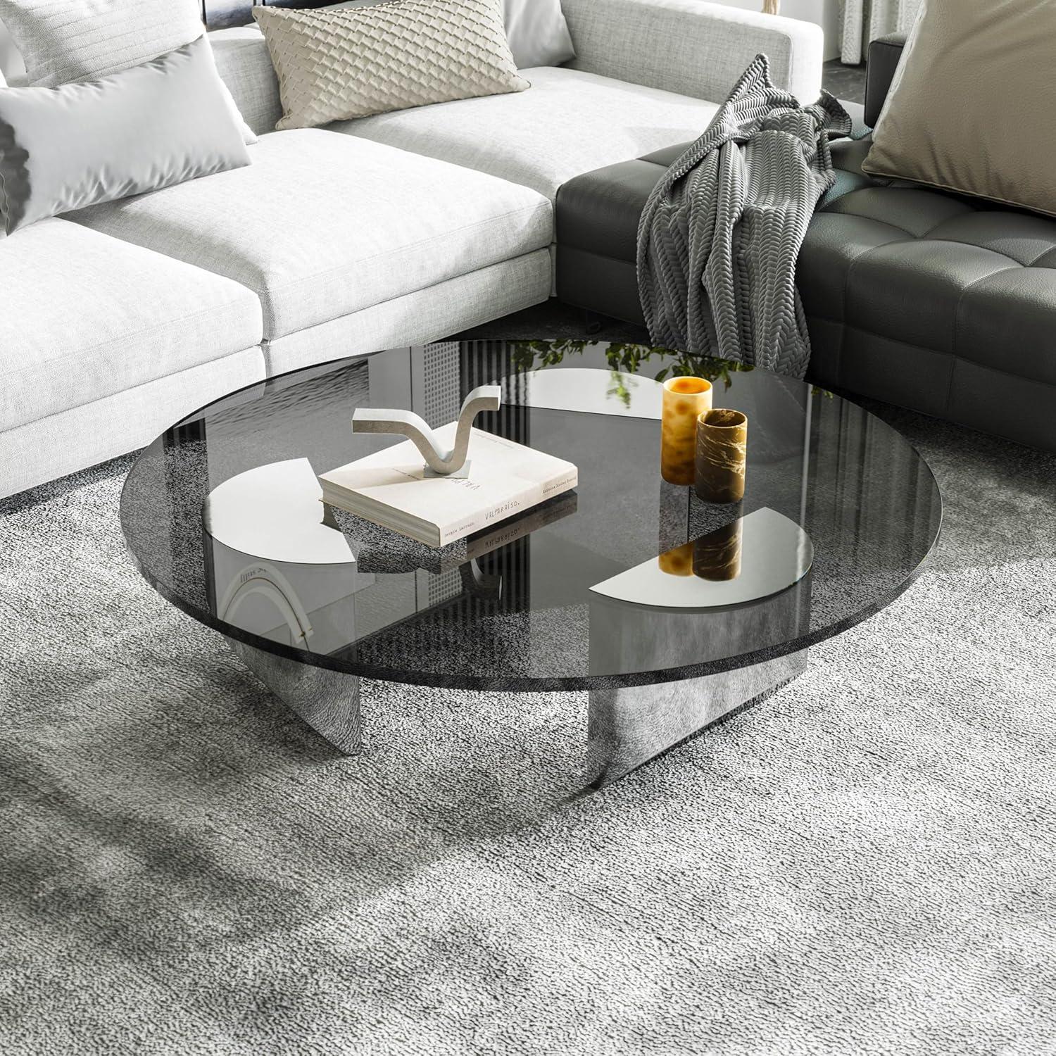 Featuring a distinctive tiptoe design, this round coffee table marries form and function seamlessly. Its 20mm thick tempered glass top is not only visually striking with a sleek black finish but also engineered for safety with smooth, rounded edges-perfect for households with children or pets. The semi-circular polished steel legs create a light, floating effect that makes the table appear as if it’s balanced delicately on tiptoe. Measuring 46.1 inches in diameter and standing at 11.4 inches tall,it offers ample surface area to hold drinks,books,or decorative pieces,while its steel construction ensures strong,stable support with a weight capacity of up to 330 lbs.