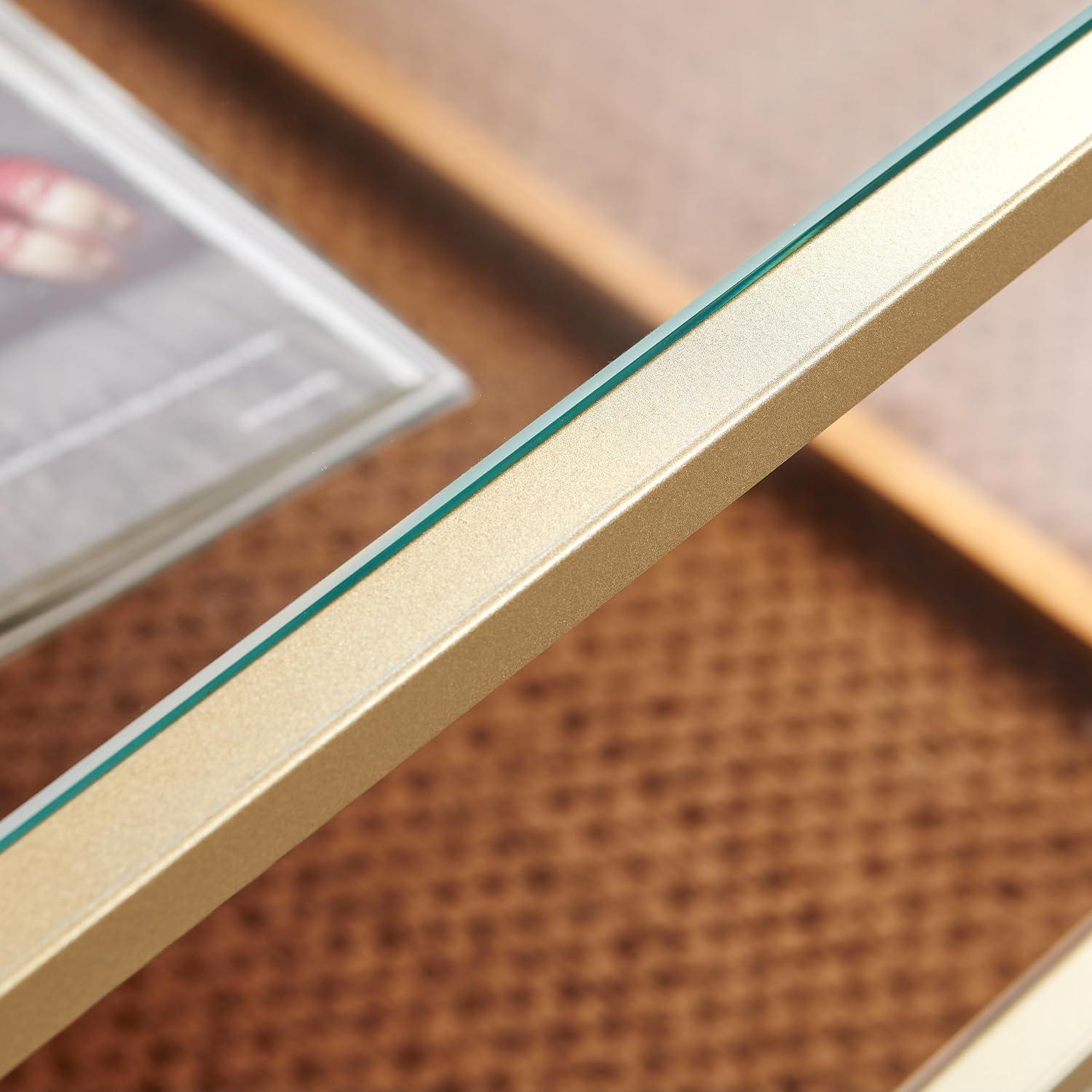 Sleek Gold-Plated Frame with Dual Glass Tiers for Stylish Living Spaces
