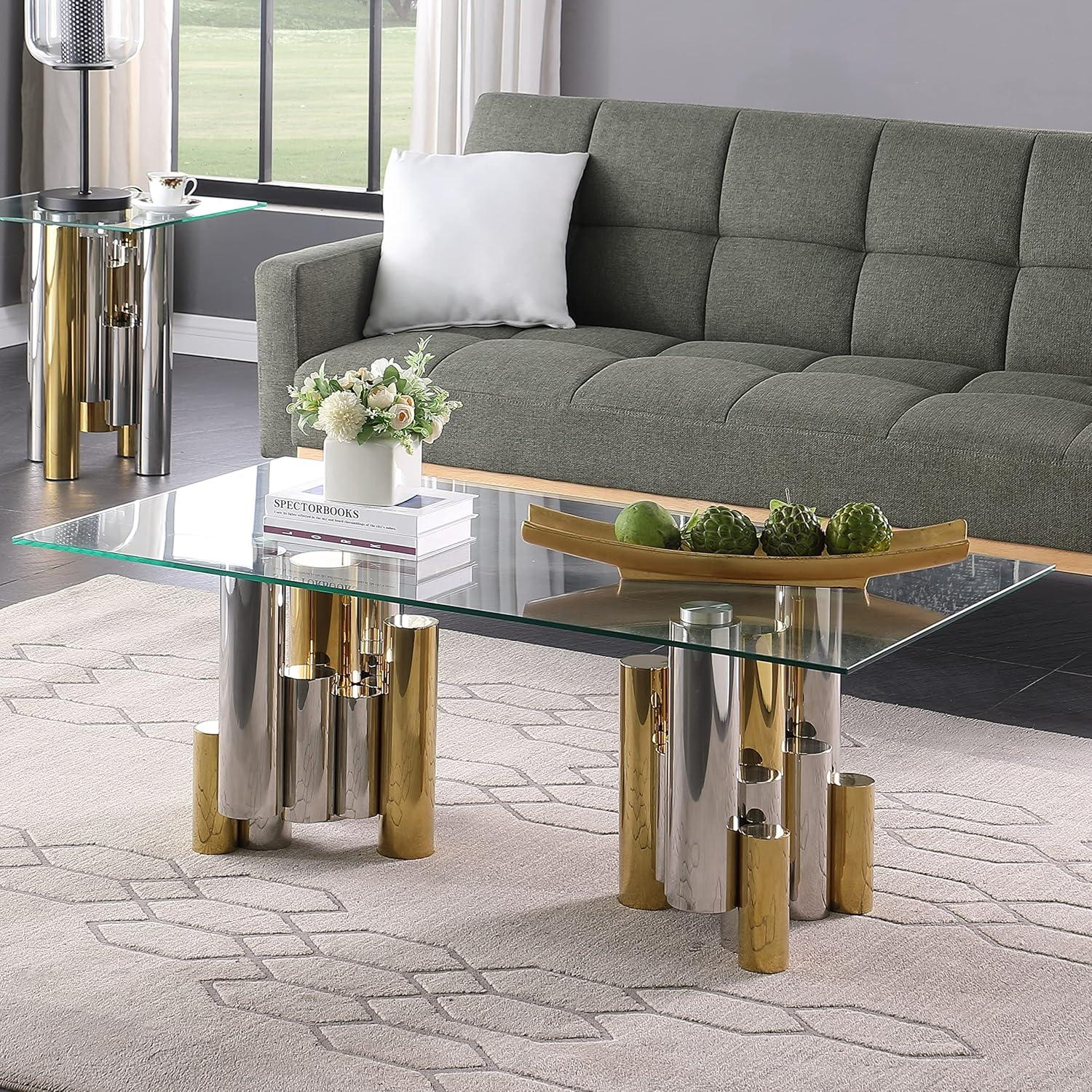 Elegant Glass Table with Gold-silver Stainless Steel Frame for Living Spaces