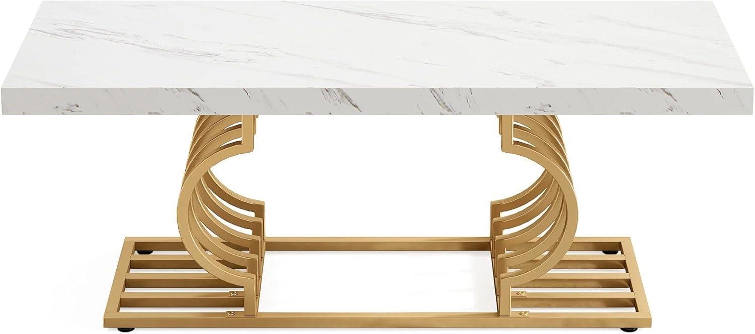 Sophisticated Faux Marble Coffee Table with Geometric Gold Base, 47.24*19.68*19.68 inch