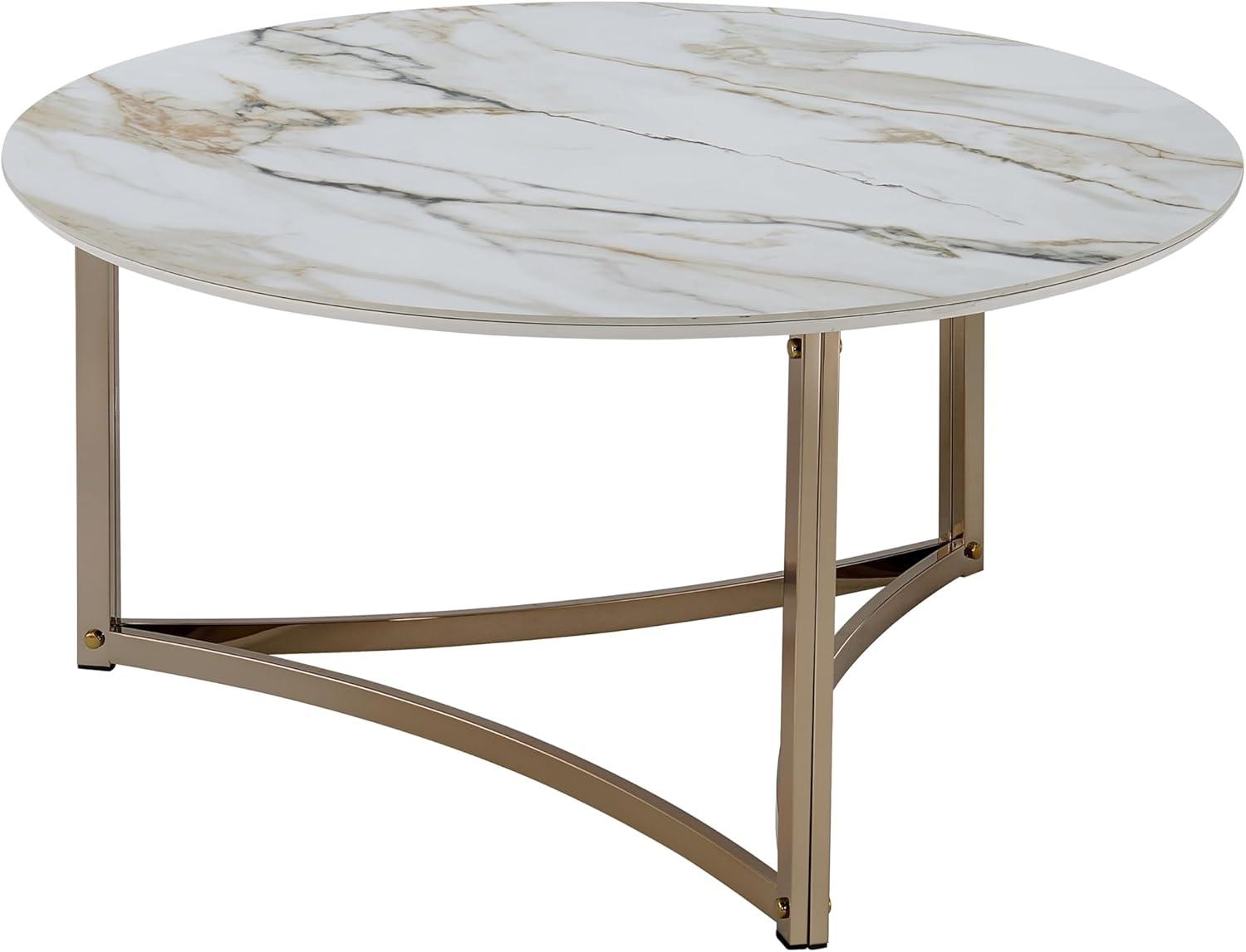 Acme Aziz Contemporary Metal Coffee Table with Stone Top in Champagne Bronze