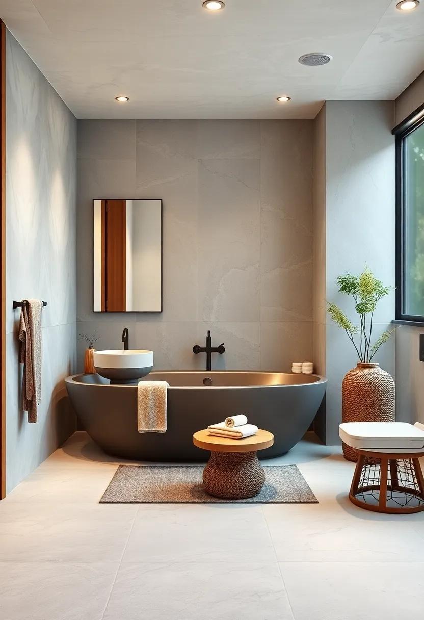 To soften the atmosphere further, flowing fabric screens drift gracefully near the shower or vanity areas, filtering light and providing subtle privacy without interrupting the bathroom’s open, airy feel. Their delicate movement adds a dynamic softness that contrasts beautifully with the robust natural elements. Incorporating these elements benefits both aesthetics and function, as seen in the table below demonstrating key materials and their contributions to the tranquil ambiance: