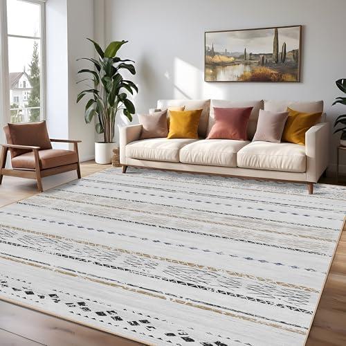 GENIMO 8×10 Area ‌Rugs for Living Room, Machine Washable Non Slip Vintage Retro Rugs, Low‌ Pile Lightweight⁤ Chenille Print Rug for Bedroom, ⁣Dining Room,⁤ Home Office, Soft White