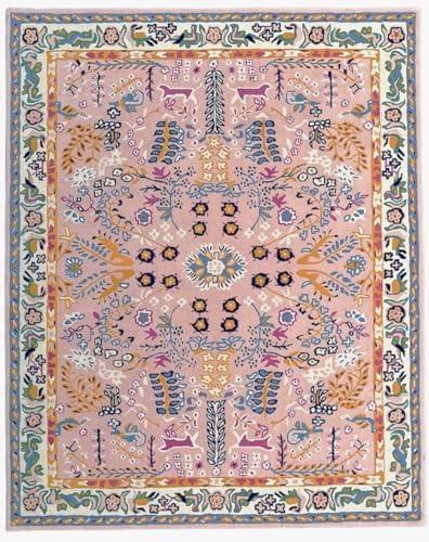 Averry Hand-Tufted Wool Area Rug Pink Colorful, Non-Skid Backing, Sizes 5’x8′, 8’x10′, 9’x12′ ⁢(9×12 feet)