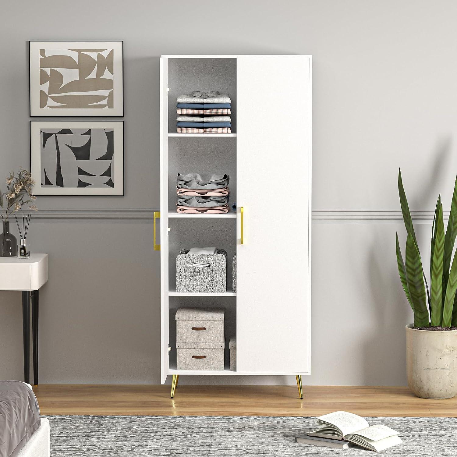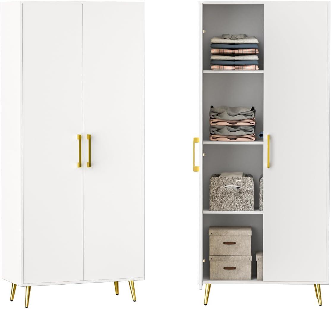 After spending time with this modern armoire, we appreciate its thoughtful blend of style and functionality.The clean white finish paired with gold handles and legs brings a fresh,elegant vibe that easily complements various interior themes-from contemporary to boho chic. Its solid wood construction strikes a great balance between durability and portability, making it ideal for small apartments or compact bedrooms where space is at a premium. The two adjustable shelves inside help keep belongings neatly organized, whether you’re storing clothes, linens, or even pantry items.Plus, the option to detach the legs adds versatility, allowing it to transform from a freestanding wardrobe to a low-profile storage cabinet with ease.