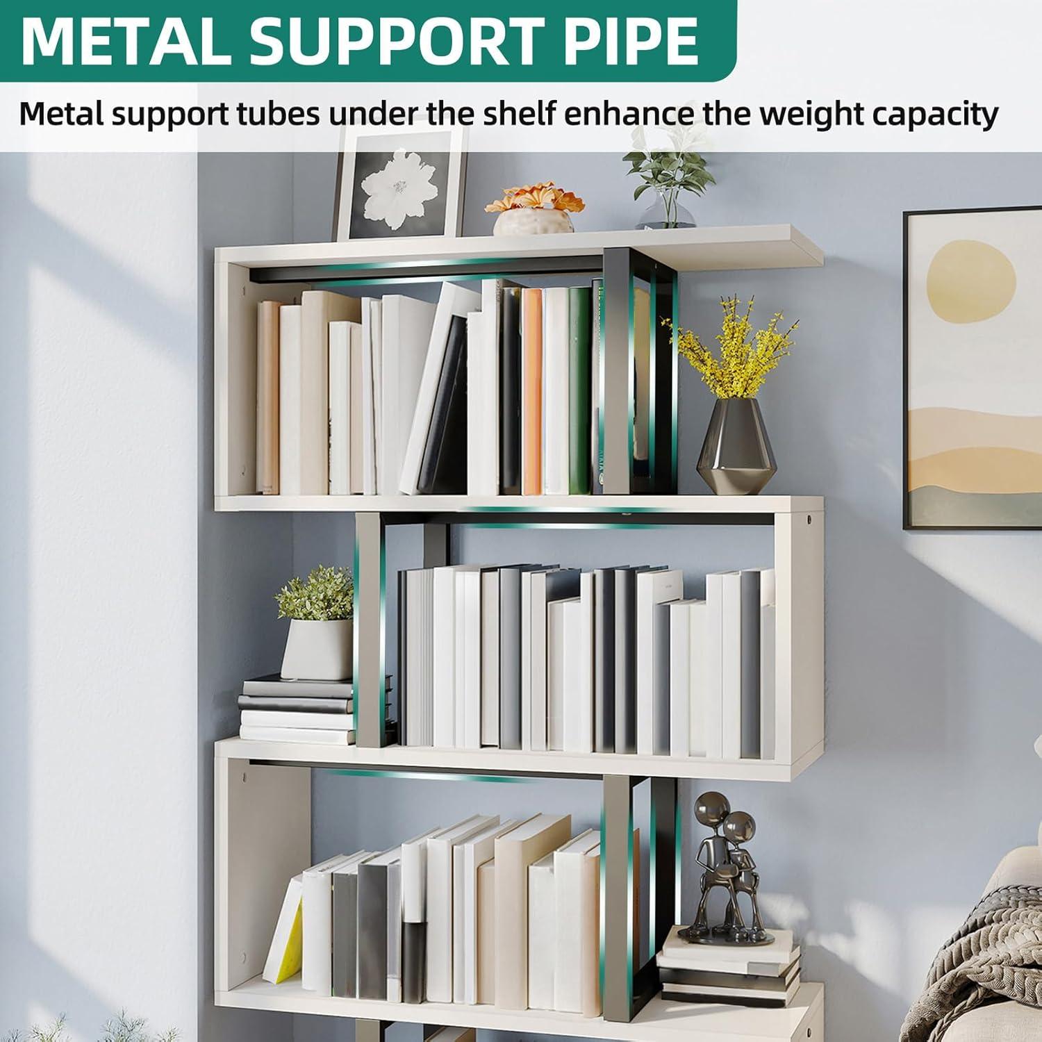 Embodying a perfect blend of form and function, this bookshelf stands out with its distinctive S-shaped, modern silhouette that transforms any space into an artful display. Its five-tier layout offers generous storage and display opportunities, serving not only as a bookcase but also a versatile room divider or decorative shelf. Whether placed in the living room, office, hallway, or bedroom, its cream white finish adds a touch of subtle elegance that complements a wide range of interior styles.