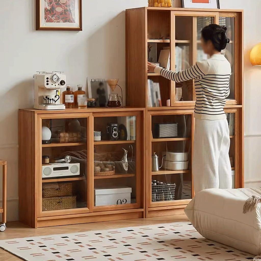 | Clear glass display sections turn storage into an elegant showcase | Glass panels demand regular cleaning to maintain their openness and sparkle |