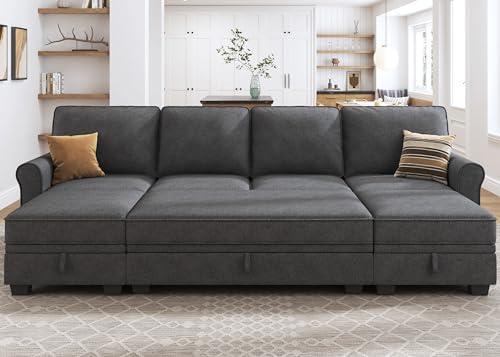 This sectional sofa combines comfort and practicality with its hidden storage space beneath each seat, making it ideal for storing toys, blankets, and remote controls to keep your living room tidy. The flexible U-shaped design allows for various configurations, including a spacious sofa bed, catering to your needs for extra sleeping space or lounging. Featuring movable ottomans, this piece can be tailored to fit your space perfectly, whether you choose to connect them for a cohesive look or place them individually for versatility.
