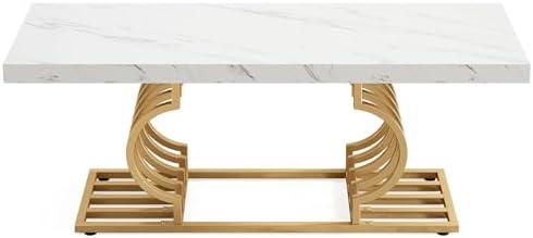 This sophisticated coffee table seamlessly combines modern elegance with utility, making it a vital addition to any living space. Measuring 47.24 x‍ 19.68 x 19.68 inches, it features a spacious ‌faux marble tabletop perfect for displaying cherished ⁢collectibles or serving as a glamorous accent piece​ in your home. The⁤ elegant gold geometric frame ⁣ not​ only adds a touch of luxury but⁢ also provides ⁢a sturdy construction, ​ensuring it can​ support up to 220 lbs. ⁢Its quick ⁢and easy⁣ assembly in just 20‍ minutes ​allows you to enjoy this stunning piece ‌without the⁤ hassle.
