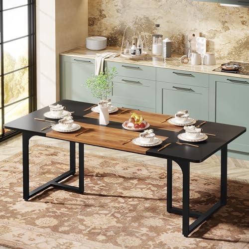 This well-constructed dining option boasts a thick, waterproof particle board surface supported by a robust metal frame, ensuring stability for everyday use. Measuring 70.87″W x 33.46″D x 29.92″H, it comfortably accommodates 6-8 people, making it an excellent choice for family dinners or larger social gatherings. The surface features a scratch-resistant melamine finish, enhancing durability while promoting easy maintenance. Additionally, its versatility allows it to serve as a kitchen table, conference table, or even an office desk, seamlessly fitting various spaces and occasions.