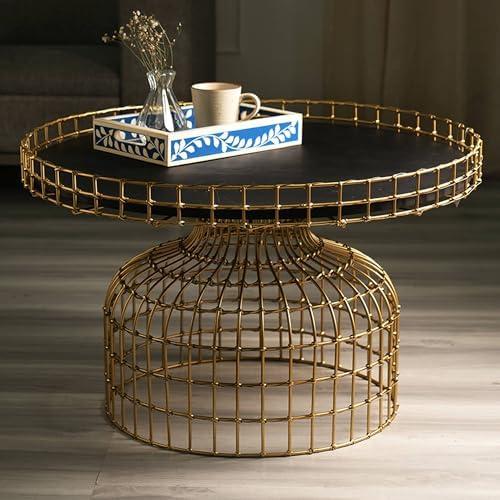 Elegant Round Coffee Table with Black and Gold Finish