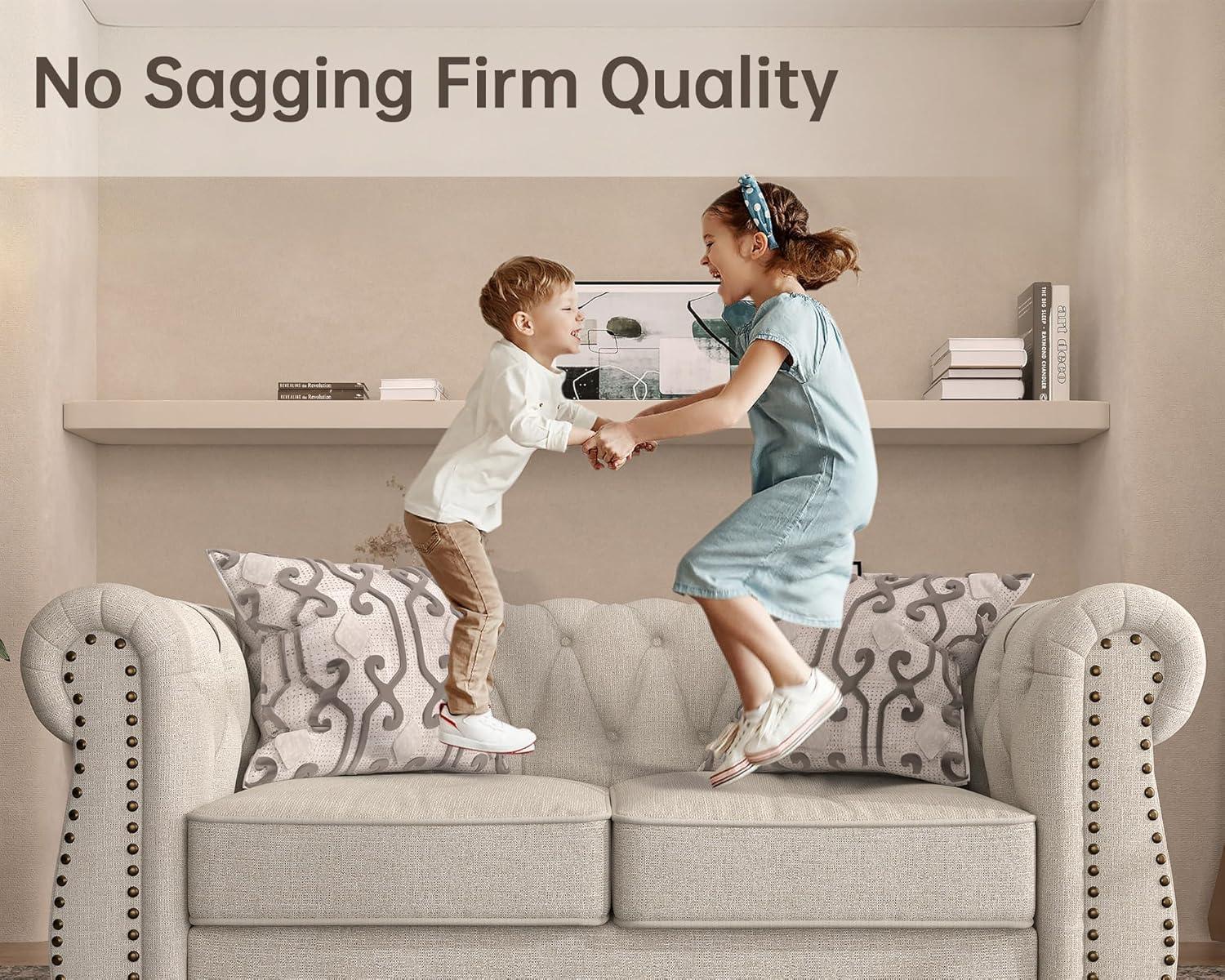 The thick chenille upholstery offers a plush, inviting surface that instantly feels cozy the moment we sink into it.Combined with high-density foam cushioning, the seats provide a delightful balance of softness and support. This means whether we’re lounging for hours or having guests over, the sofa maintains its shape and comfort without feeling firm or overly stiff.The generous padding paired with the durable coil spring system ensures that every seating moment is both relaxing and ergonomically sound, preventing any sagging even after extended use.