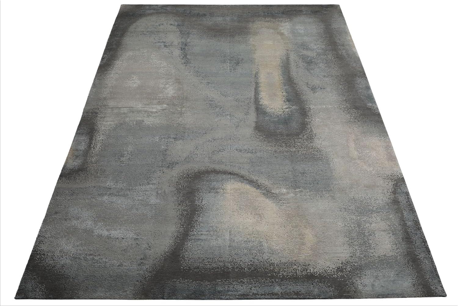 After spending considerable time with this hand-knotted rug, we confidently recommend it to anyone looking to elevate their living space with a blend of artistry and durability. Its unique abstract design paired with muted gray, beige, and celadon tones brings both warmth and sophistication, creating a dynamic focal point without overwhelming the room. The plush texture, owing to a masterful combination of wool and silk fibers, offers a luxurious underfoot feel that holds up well in areas of frequent use such as living rooms, bedrooms, and even home offices.However, buyers should be prepared for a brief period where the rug may have creases upon arrival-this is normal and fades as it settles.