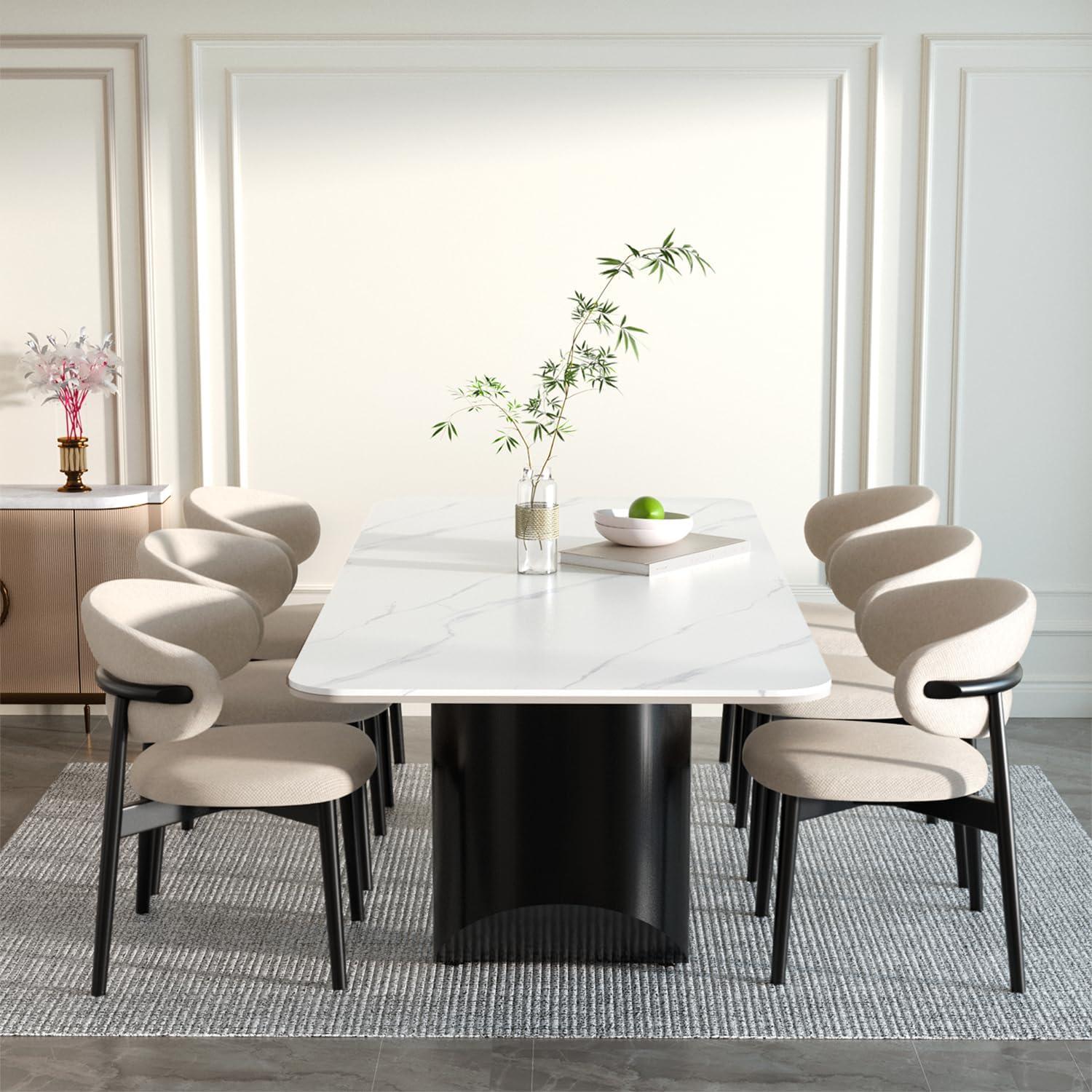 Designed with a contemporary semi-circular style, this dining table comfortably accommodates six to eight people without feeling cramped. The generous 70.9″ length provides ample space for everyone to enjoy meals, work, or gather for conversations with ease. Thanks to its thoughtful proportions, chairs slide effortlessly under the table when not in use, helping us maintain an uncluttered environment and maximizing our dining area’s functionality.