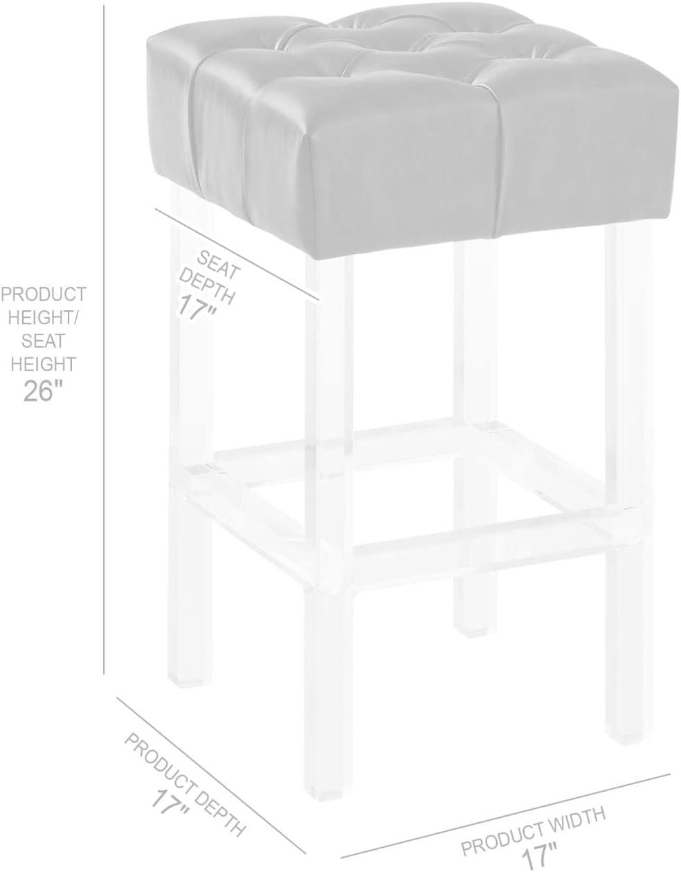 The seat upholstered in plush faux leather elevates the overall aesthetic with its elegant tufting, delivering a subtle texture that plays nicely against the smooth acrylic. The cushion offers just the right amount of softness, striking a balance between softness and firmness. Sized at 17 inches wide and deep, with a 26-inch seat height, it fits comfortably at most standard counters. Below is a swift overview of the key build elements that stood out during our review: