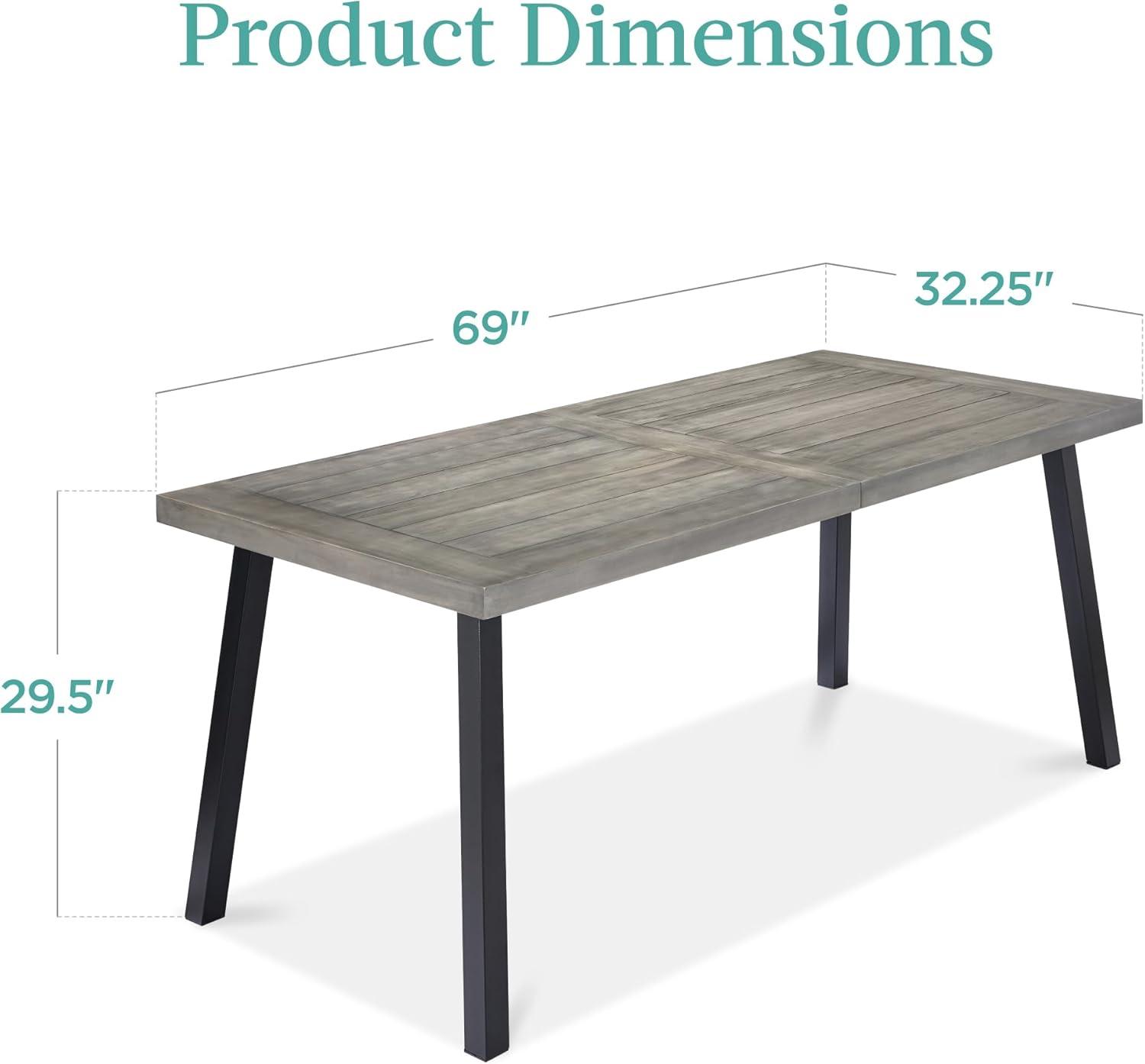 | Rustic yet modern design with clean lines fits effortlessly in indoor or outdoor spaces. | Table size (69″ x 32.25″) might feel tight for larger dinner parties. |