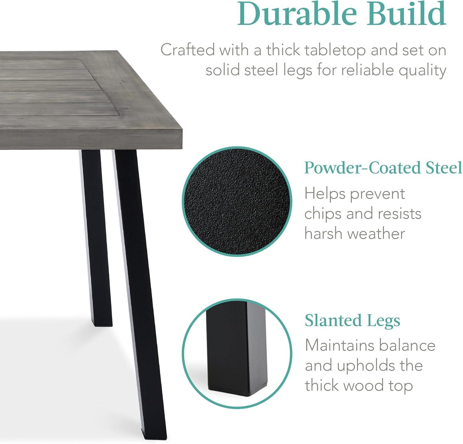 - Materials: Weather-resistant acacia wood, powder-coated steel legs