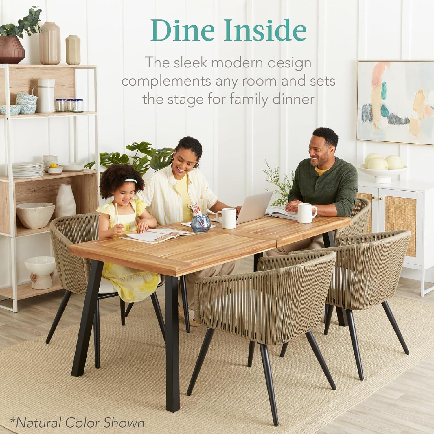 this dining table delivers impressive value, combining sturdy construction with an elegant, rustic appeal. The acacia wood top offers natural resistance to weather, making it great for both indoor and outdoor settings. Its powder-coated steel legs not only add a modern touch but also ensure stability and durability, easily supporting up to 350 pounds. Whether it’s hosting family dinners or casual gatherings, the size comfortably accommodates six people without feeling cramped. Careful assembly and routine maintenance will keep this table looking fresh and solid for years to come.