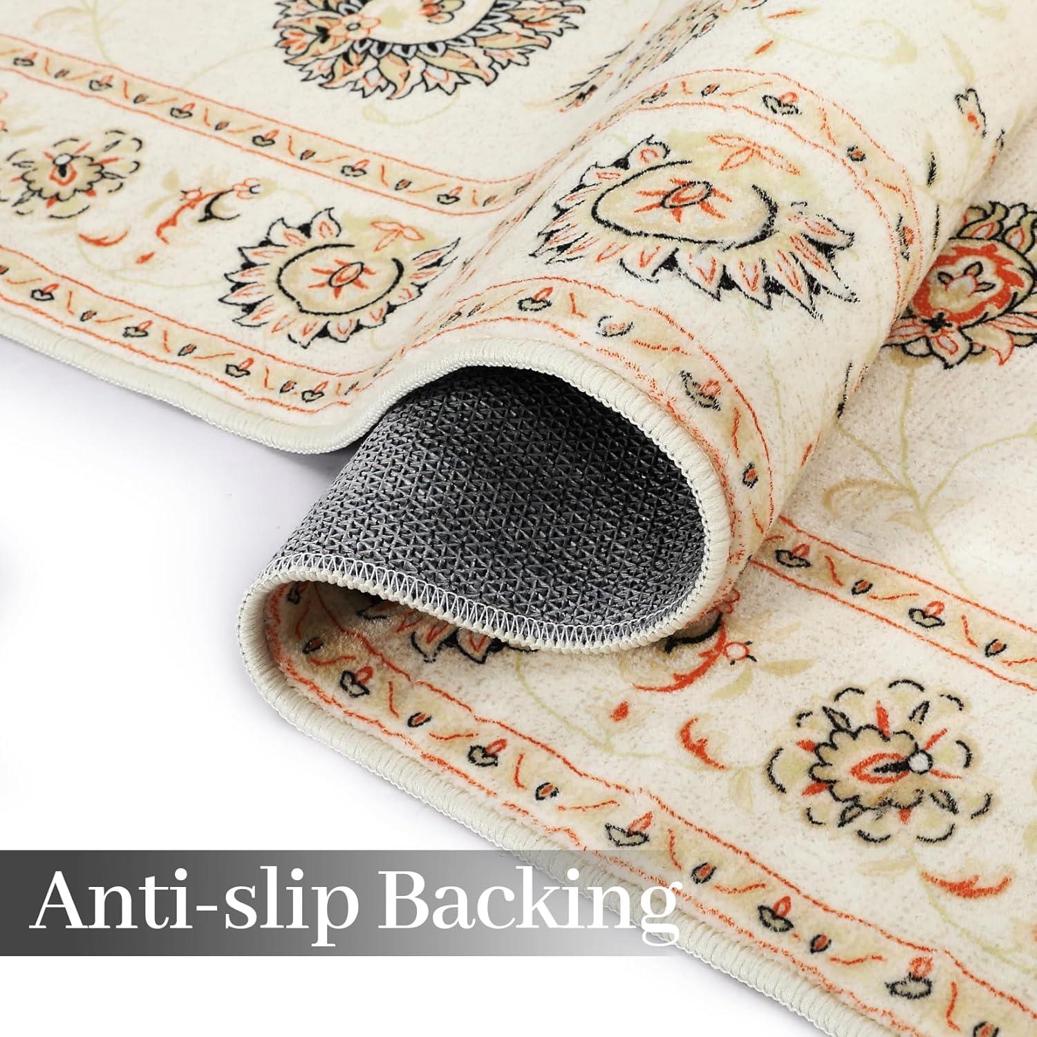 This area rug truly excels in versatility, making it an excellent choice for a variety of rooms in our home. Its non-slip TPR backing provides secure grip on hardwood, tile, or laminate floors, ensuring safety in high-traffic areas such as the living room and kitchen. The lightweight, low-pile design not only adds a subtle vintage charm with its floral pattern but also makes it incredibly easy to maintain. Whether placed under the coffee table or extending across a reading nook, it enhances comfort while protecting floors from scratches and wear. The stain-resistant fabric also means it can withstand the occasional spill or pet mishap without losing its appeal.