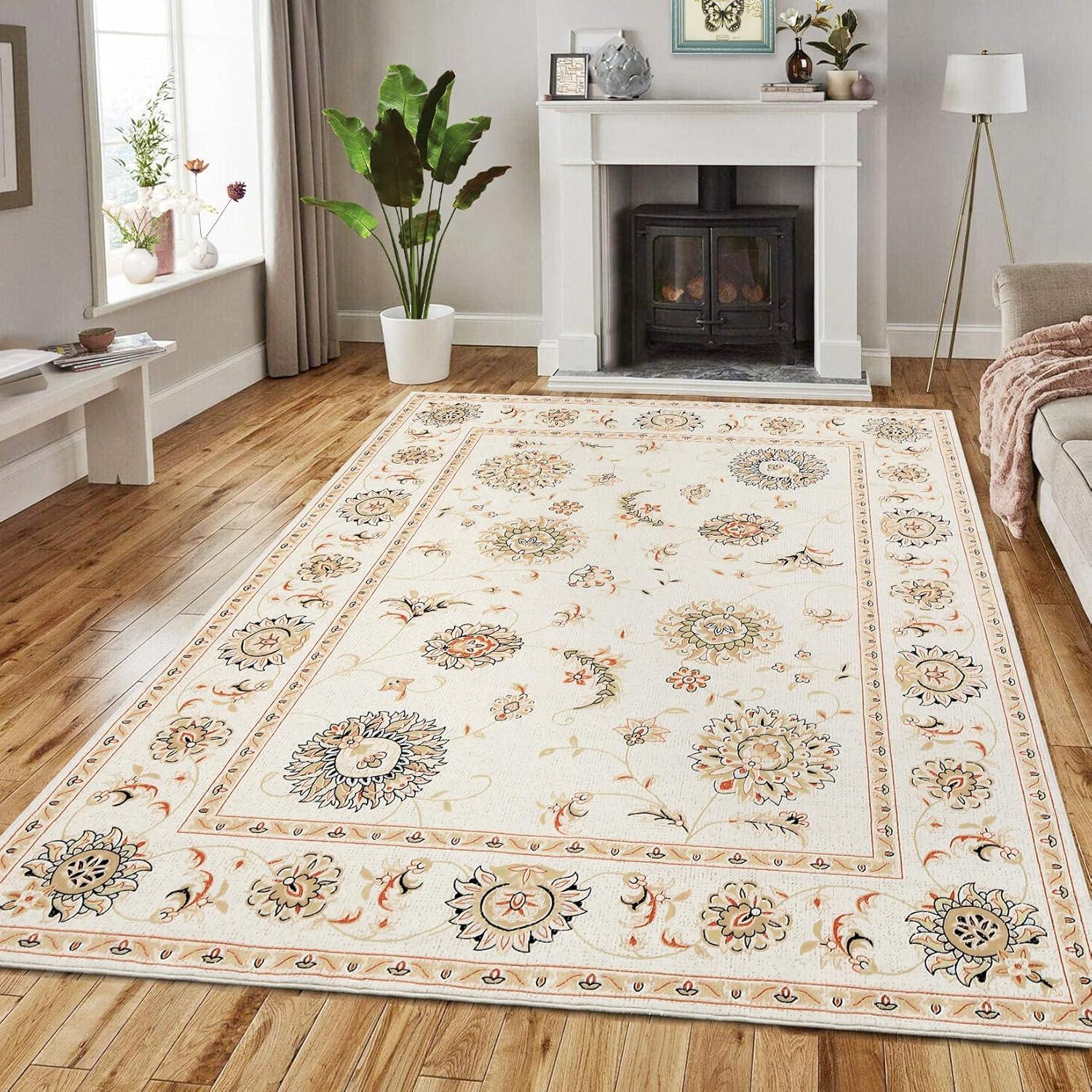 This rug blends timeless vintage charm with practical modern features,making it an excellent choice for various spaces in our homes. With its tasteful floral design in soft ivory and yellow tones, it effortlessly elevates the ambiance of living rooms, bedrooms, nurseries, kitchens, and even home offices. One of the standout qualities is its non-slip TPR backing, which ensures it stays firmly in place, providing safety and protecting your floors from scratches. Its durability and substantial weight add to the premium feel, making it suitable for high-traffic areas where style and function must coexist.