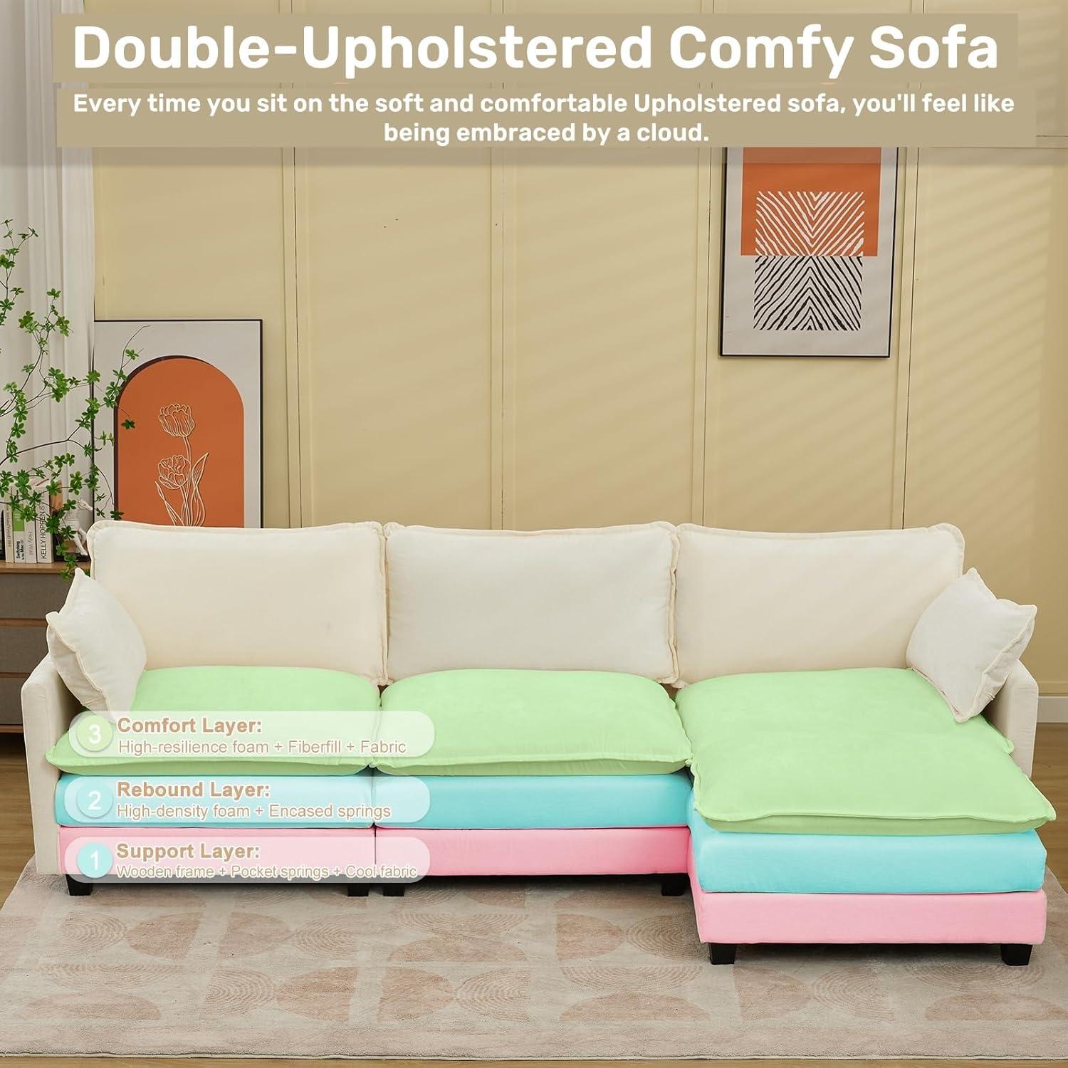 We recently had the chance to experience the Modular Sectional Couch, often dubbed the Comfy Cloud couch, and we’re excited to share our thoughts on this 113-inch L-shaped piece that promises both style and comfort. Designed with versatility in mind, this sectional arrived with an ottoman and pillows, ready to transform various living spaces, weather a roomy living room, a cozy bedroom, or a compact apartment. Crafted from durable materials and wrapped in a soft, cream-white fabric, it combines sturdy construction with plush, high-density foam cushions that invite you to sink in and relax. What stood out to us was not just its inviting look but also the ease of assembly-it took us less than 15 minutes to set everything up-and the convenience of removable, washable cushion covers that help keep the couch fresh through everyday use. Over the coming sections, we’ll dive deeper into its comfort, functionality, and how well it fits into different living environments, offering an honest look at whether this cloud couch lives up to its name.