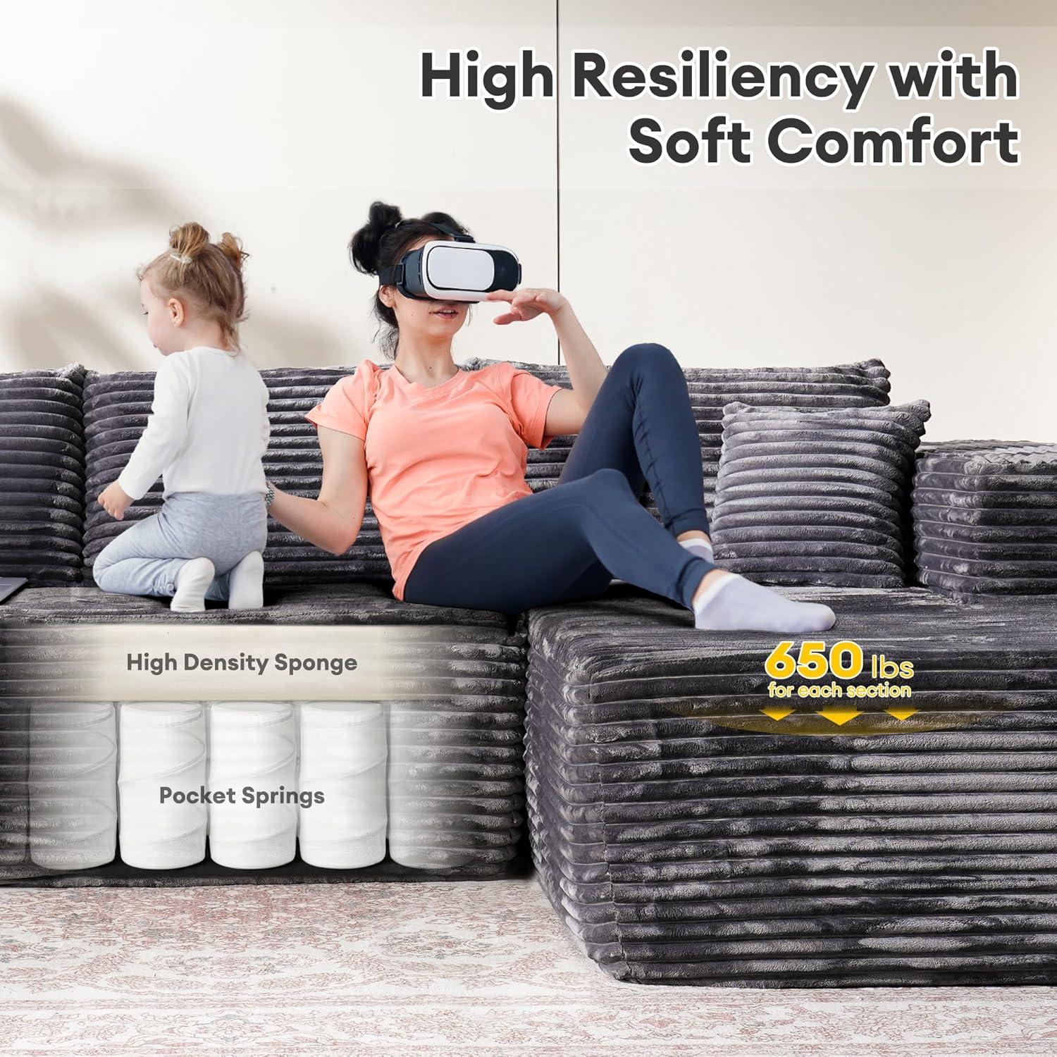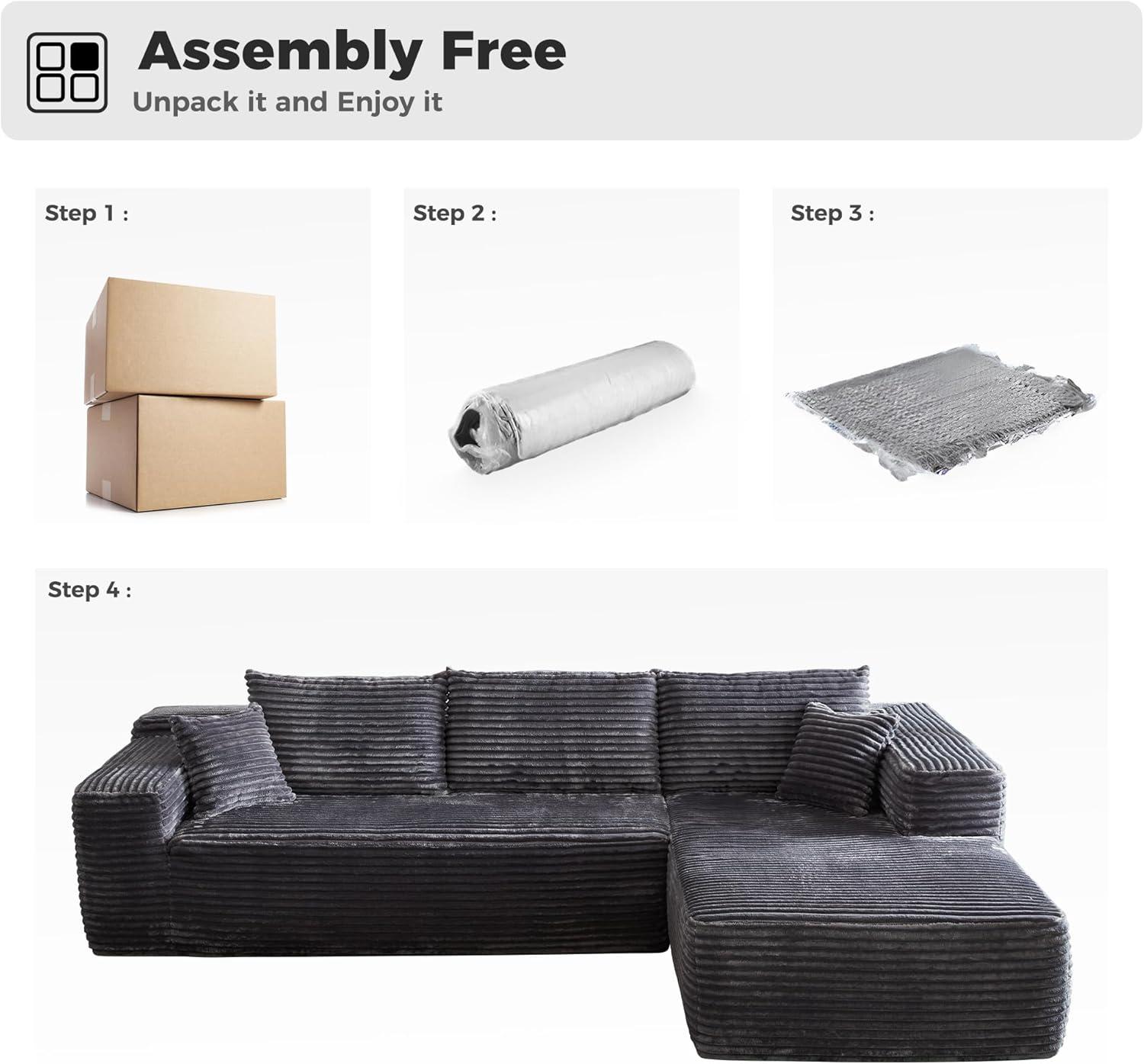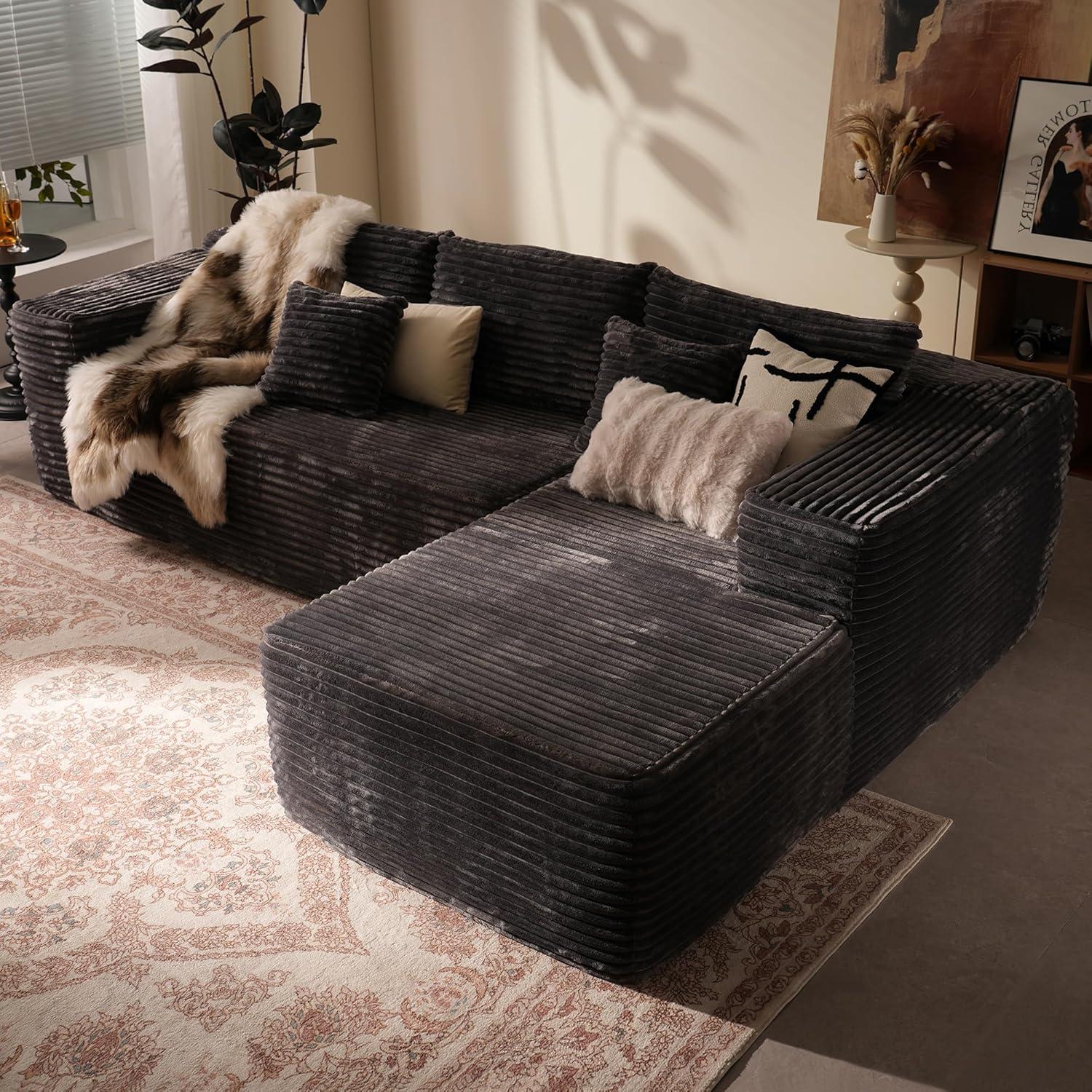 This sofa truly stands out for its blend of comfort,versatility,and effortless setup. the extra deep seats and chaise provide a cloud-like softness that invites lounging in any position – sitting, lying down, or even meditating. Its boneless design mimics the feel of a mattress, making it more than just a typical couch; it’s a haven for relaxation. Coupled with the ultra-soft velvet corduroy fabric that is breathable and built to last thanks to its pilling-free technology, this set promises durability alongside luxury. The assembly-free, couch-in-a-box concept eliminates the usual hassle, letting you enjoy your living space improvements right out of the box.