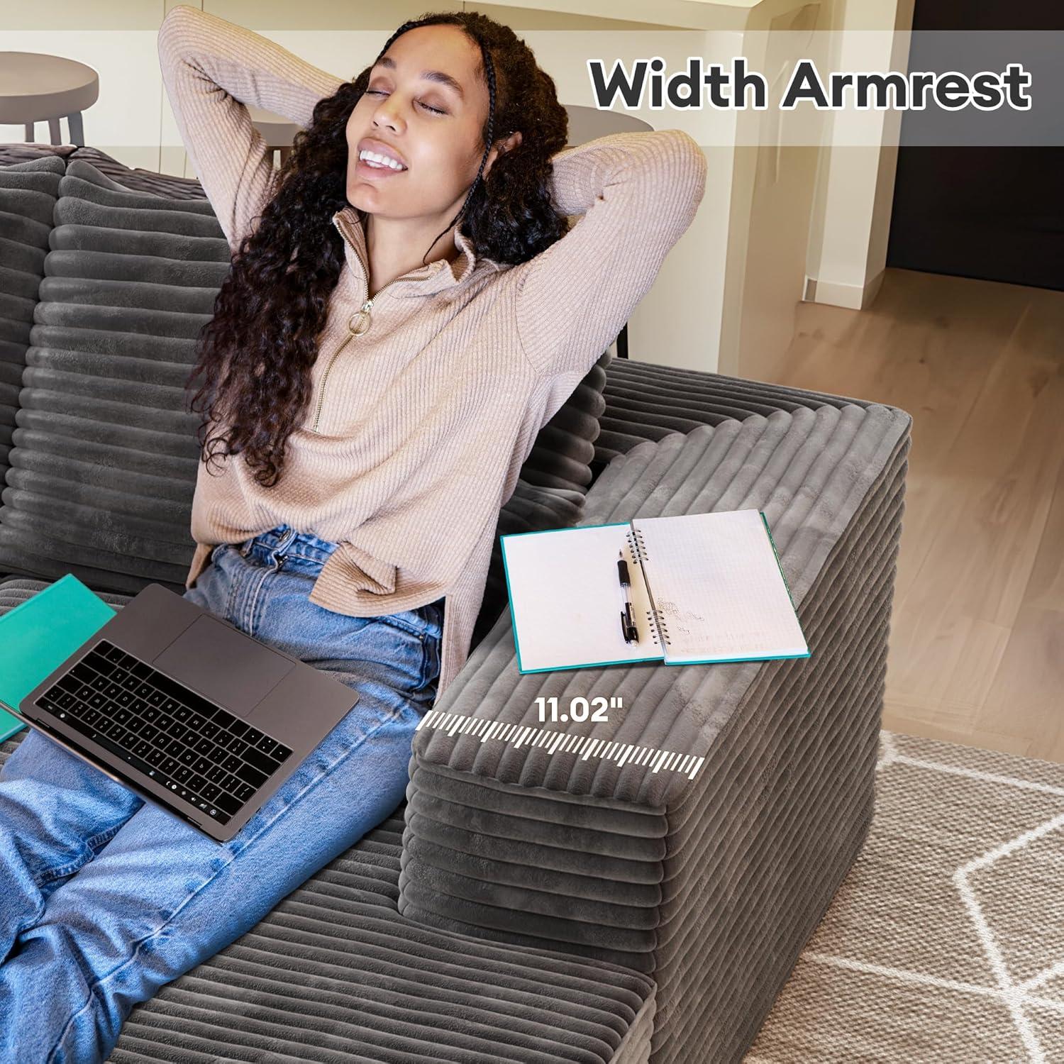 Our living room instantly feels more inviting and cozy thanks to the deep, plush design that seems to melt away stress. The extra-deep seat and chaise offer ample space for everyone to lounge comfortably, almost like sinking into a cloud. Its soft velvet corduroy fabric adds a touch of elegance while maintaining breathability, ensuring that the couch remains comfortable no matter the season. The boneless design encourages a range of relaxing positions-whether we’re sitting upright, reclining to meditate, or lying down for a quick nap. This flexibility truly transforms the room into a multi-functional sanctuary.