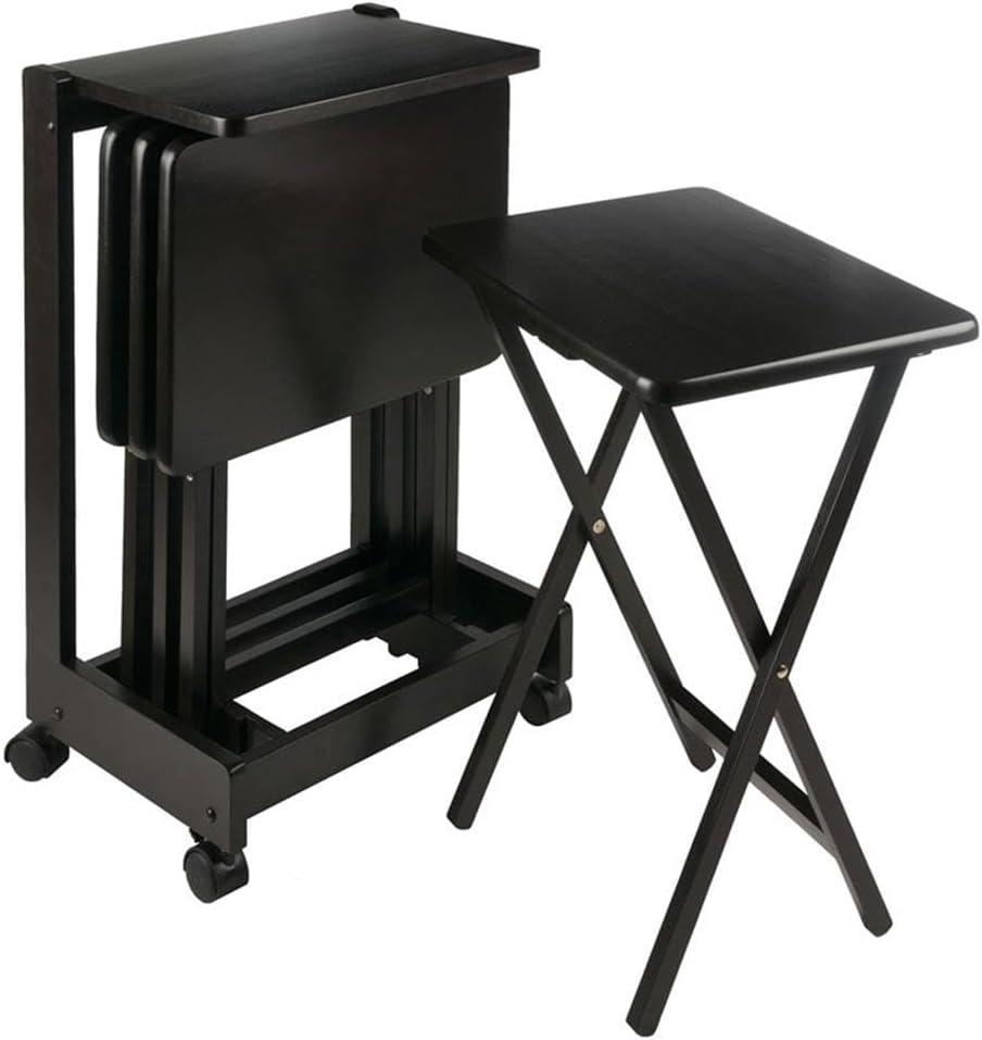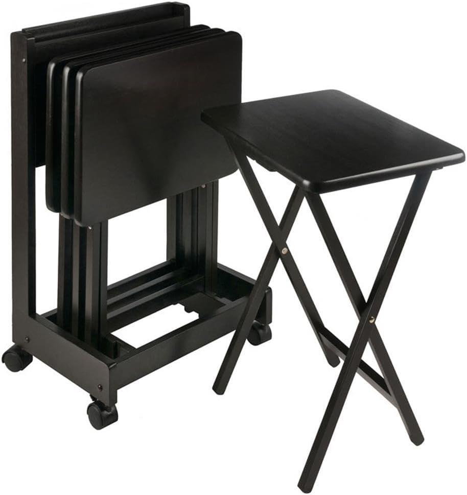 - Set Contains: 4 folding snack tables and 1 flip-top mobile stand