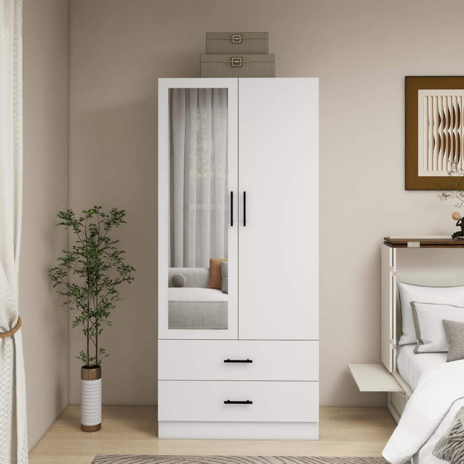 One of the standout features is the full-length built-in mirror embedded right on the front. This addition adds immense convenience to our daily routines by allowing us to check our outfits without requiring extra space for a separate mirror. It also enhances the natural light reflection in the room, making the space appear larger and more open. The mirror perfectly complements the storage functionality, which includes two spacious drawers and a sturdy hanging rod, providing organized storage options while keeping everything easily accessible. Here’s a quick overview: