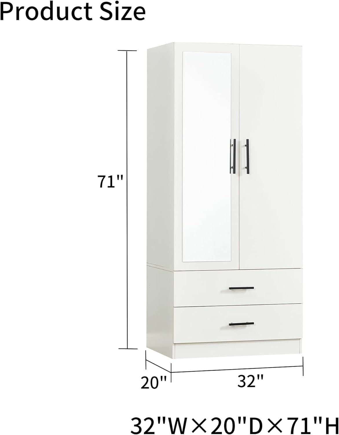 Storage options are intelligently designed to meet a wide range of needs. Inside, you’ll find a single hanging rod for shirts and jackets, complemented by two spacious drawers below-perfect for organizing smaller items like accessories, folded clothes, or essentials we want close at hand. The cabinet’s 71-inch height maximizes vertical space without overwhelming the room, making it a versatile piece for bedrooms with varying dimensions. Here’s a quick overview of its key structural elements: