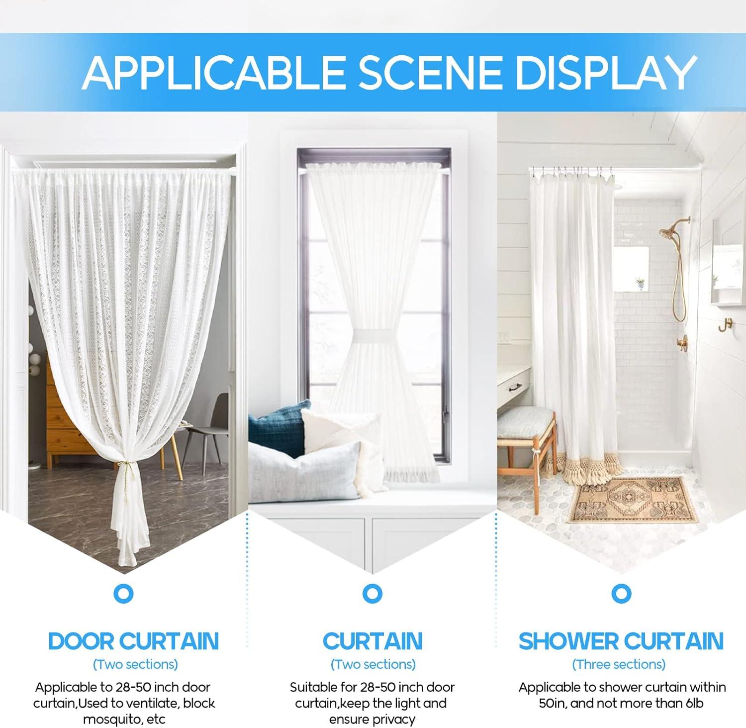 When you put one of these black tension rods into everyday spots, the first thing you notice is how unobtrusive it can be. In a kitchen window it sits close to the trim and the matte black finish tends to fade into shadows behind a valance or lightweight curtain,so the fabric becomes the visual focus. The rod’s telescoped sections show where they meet if you look up close; that small seam sometimes catches a hooked curtain or the edge of a liner as you slide it, so you may find yourself giving the curtain a quick tug or smoothing it with your fingertips after moving it.