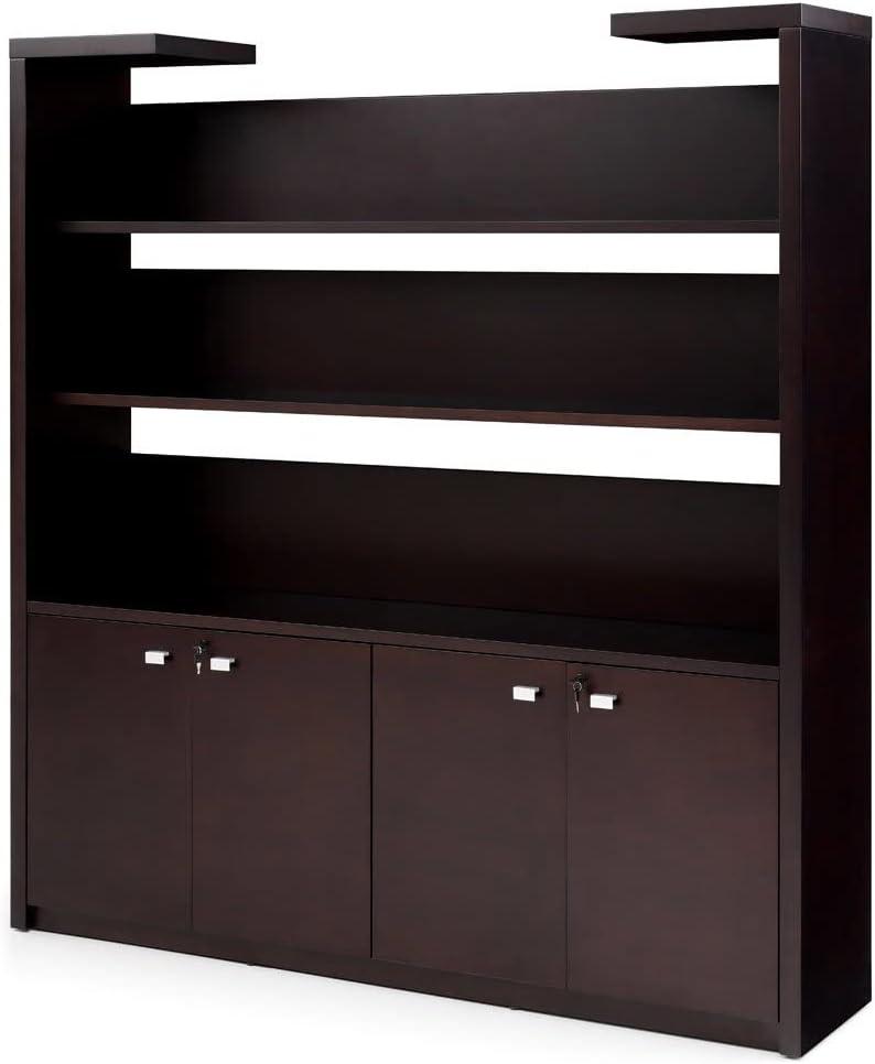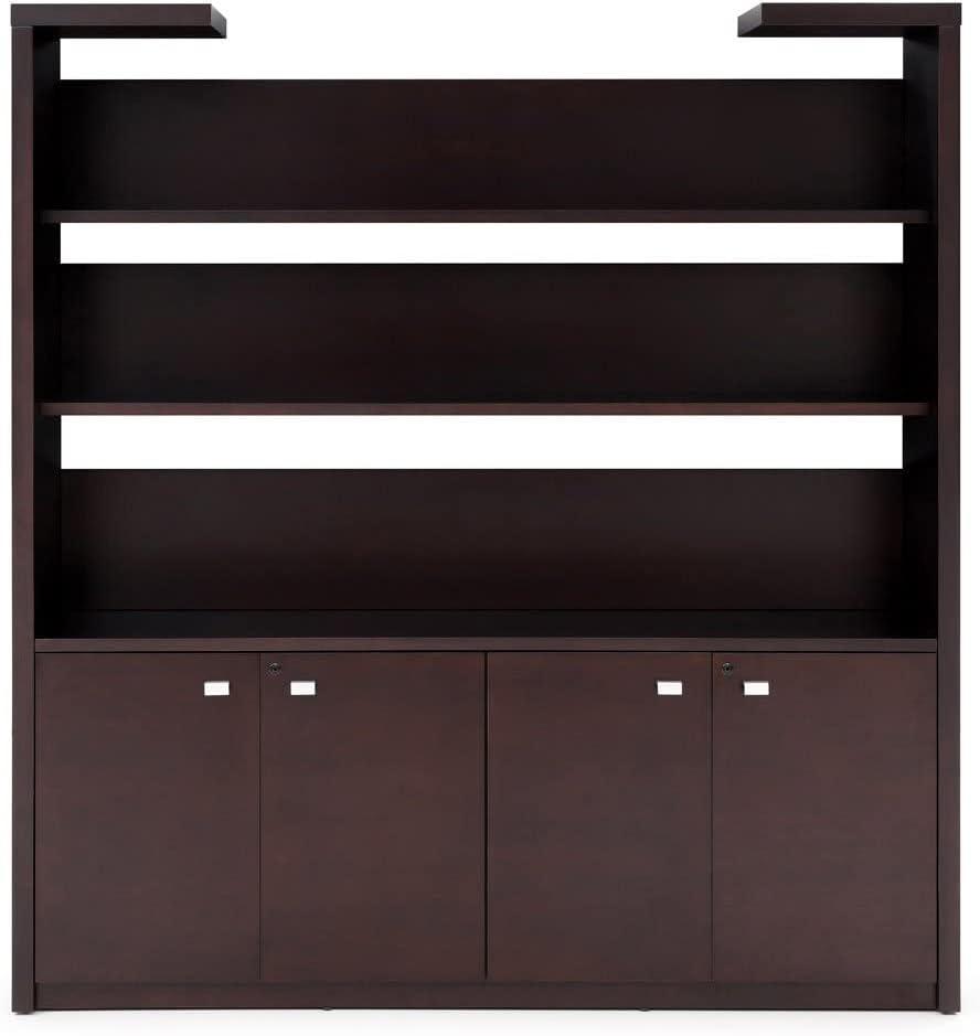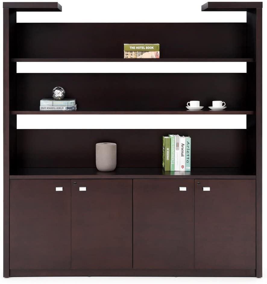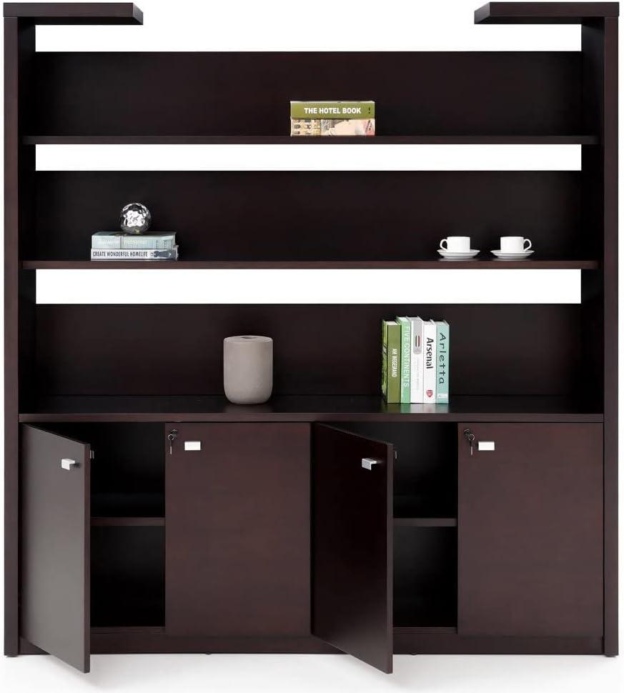 Living with the ZURI Madison Bookcase in Dark Walnut Finish with 4 Shelves and Storage – Classic Style, you notice how it quiets into the room over time, no longer a new thing but a familiar edge of the space. In daily routines it finds its uses — a folded throw, a leaning stack of magazines, the odd mug set down when you forget — and how you reach for it becomes part of its behavior. The surface takes on soft scuffs and slight marks as the room is used,and its presence becomes unremarkable in regular household rhythms. After a while it simply stays, part of the room.