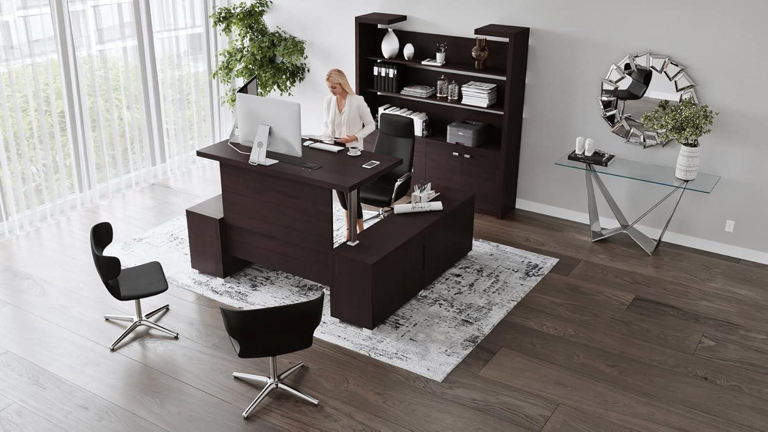 ZURI Madison Bookcase in Dark Walnut Framing an Office Wall
